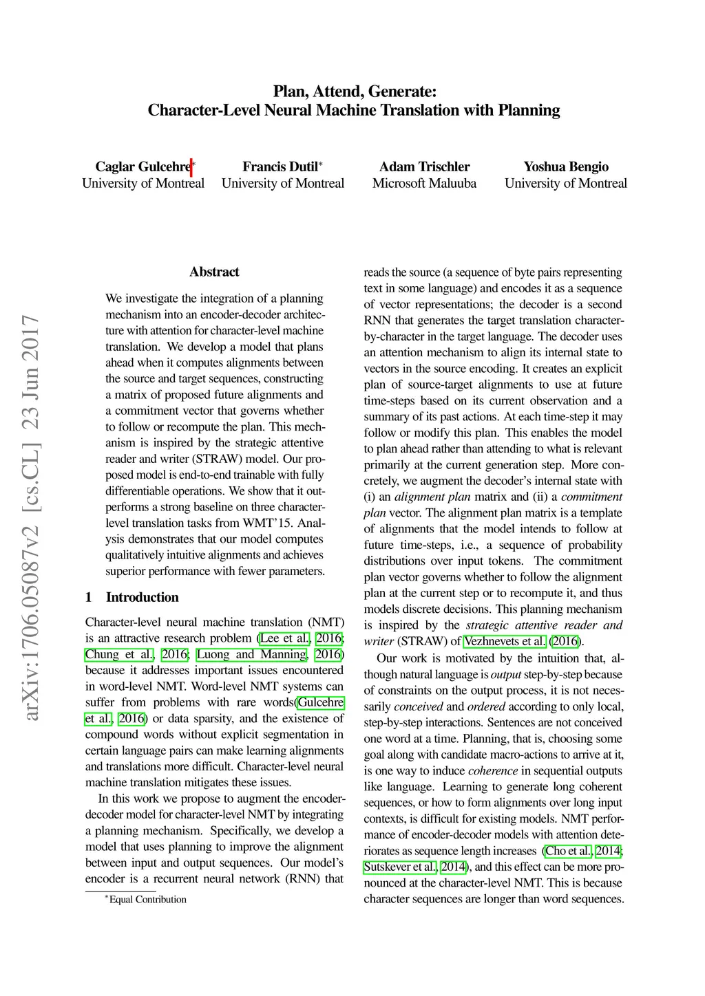 Plan, Attend, Generate: Character-level Neural Machine Translation with