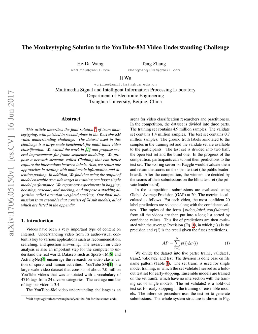 The Monkeytyping Solution to the YouTube-8M Video Understanding