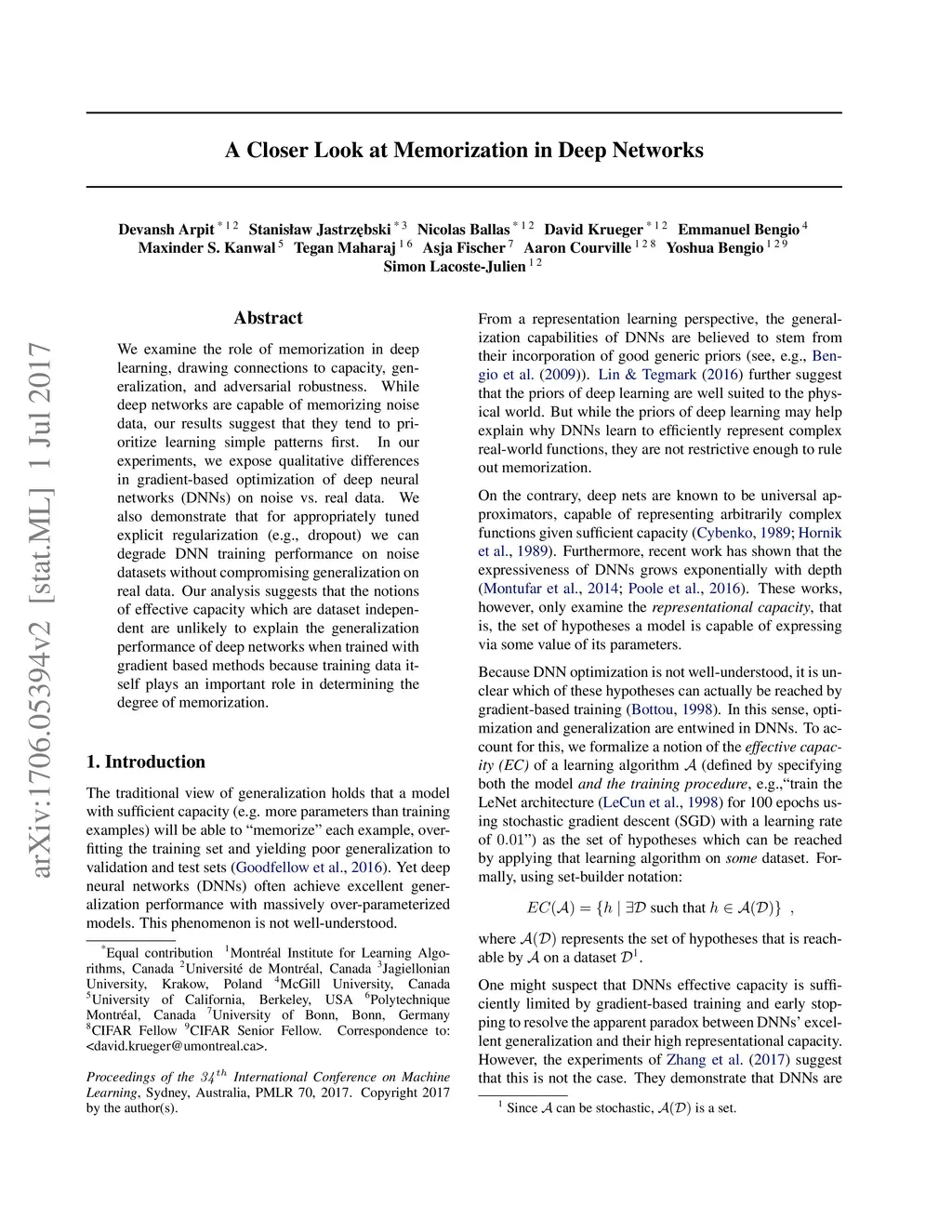A Closer Look at Memorization in Deep Networks