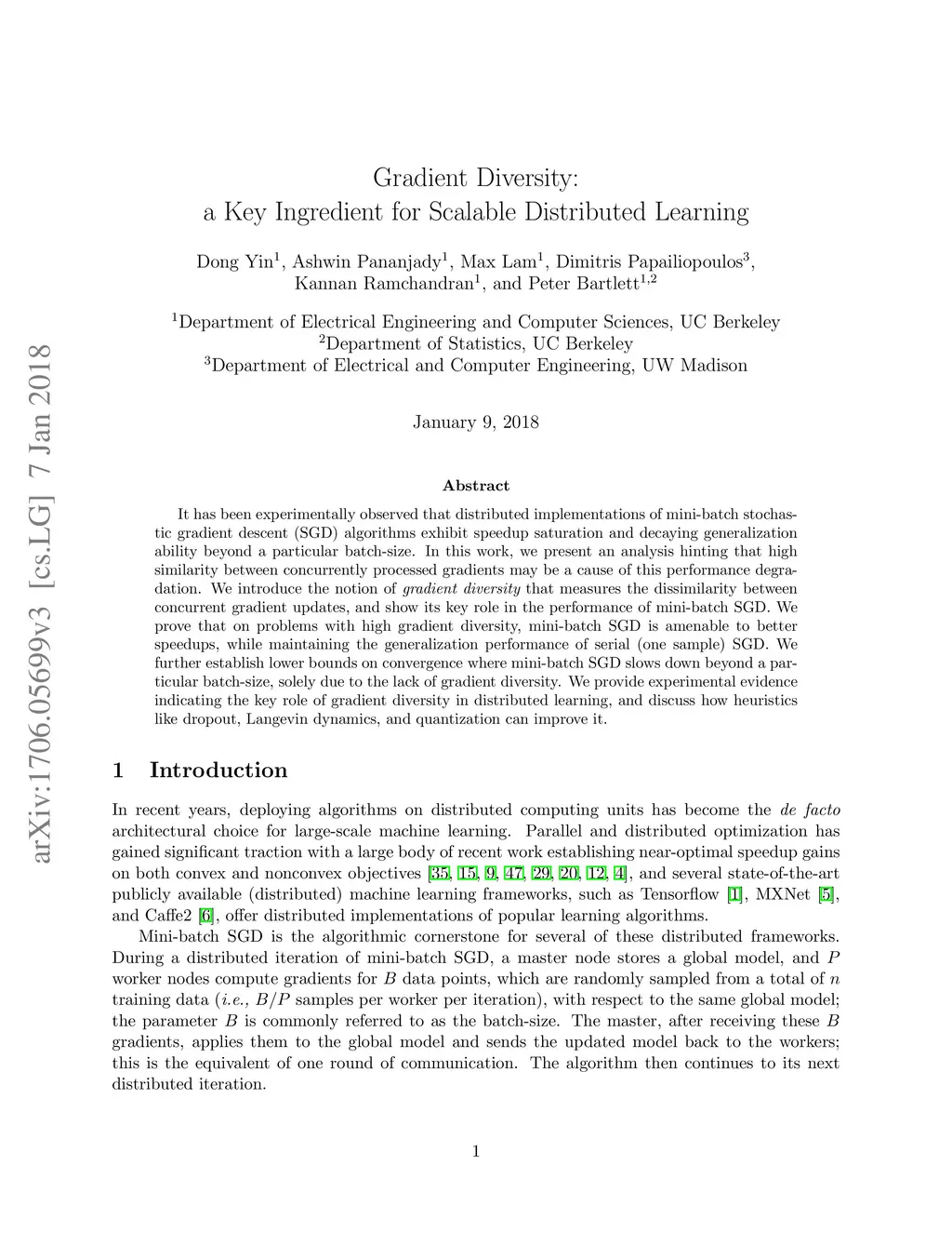Gradient Diversity: a Key Ingredient for Scalable Distributed Learning