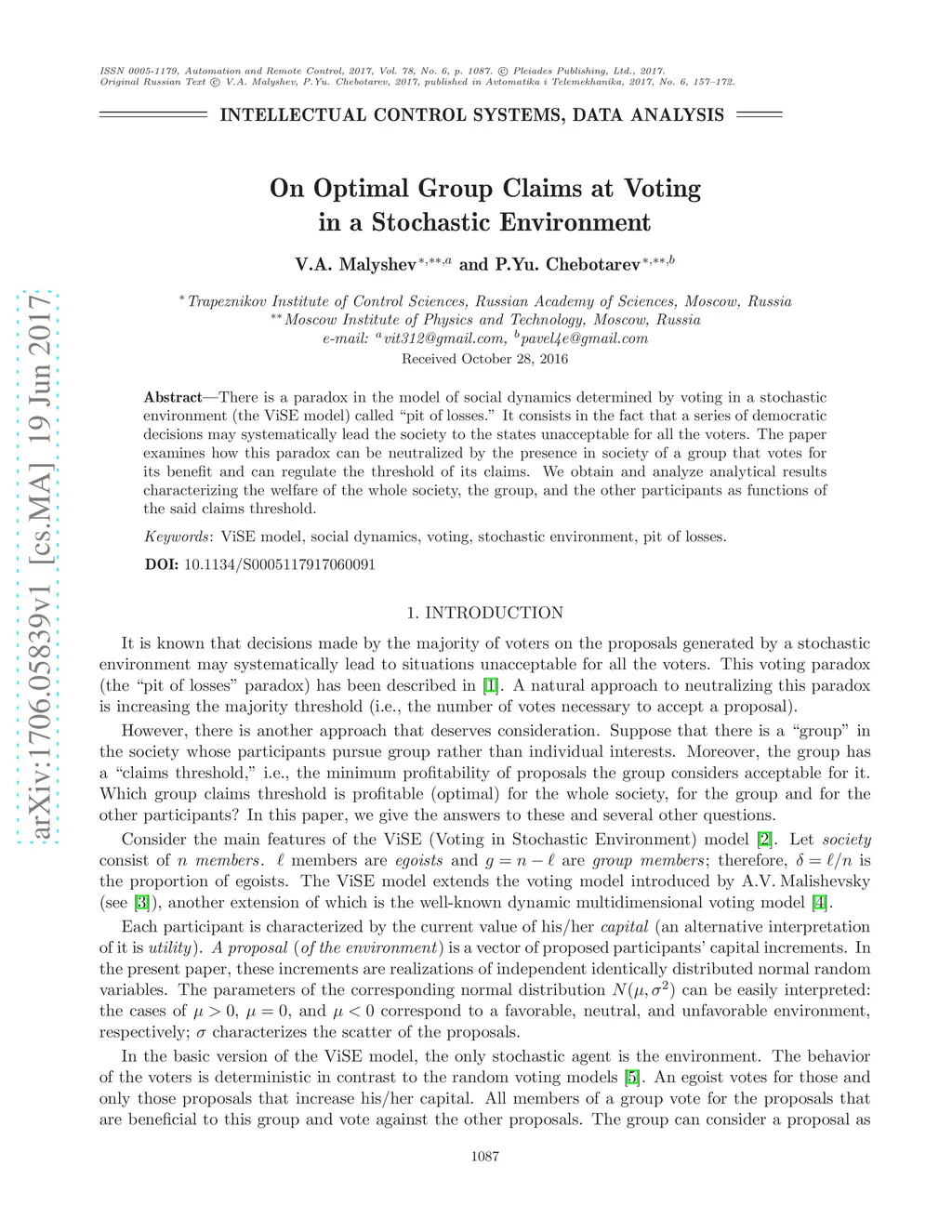 On Optimal Group Claims at Voting in a Stochastic Environment