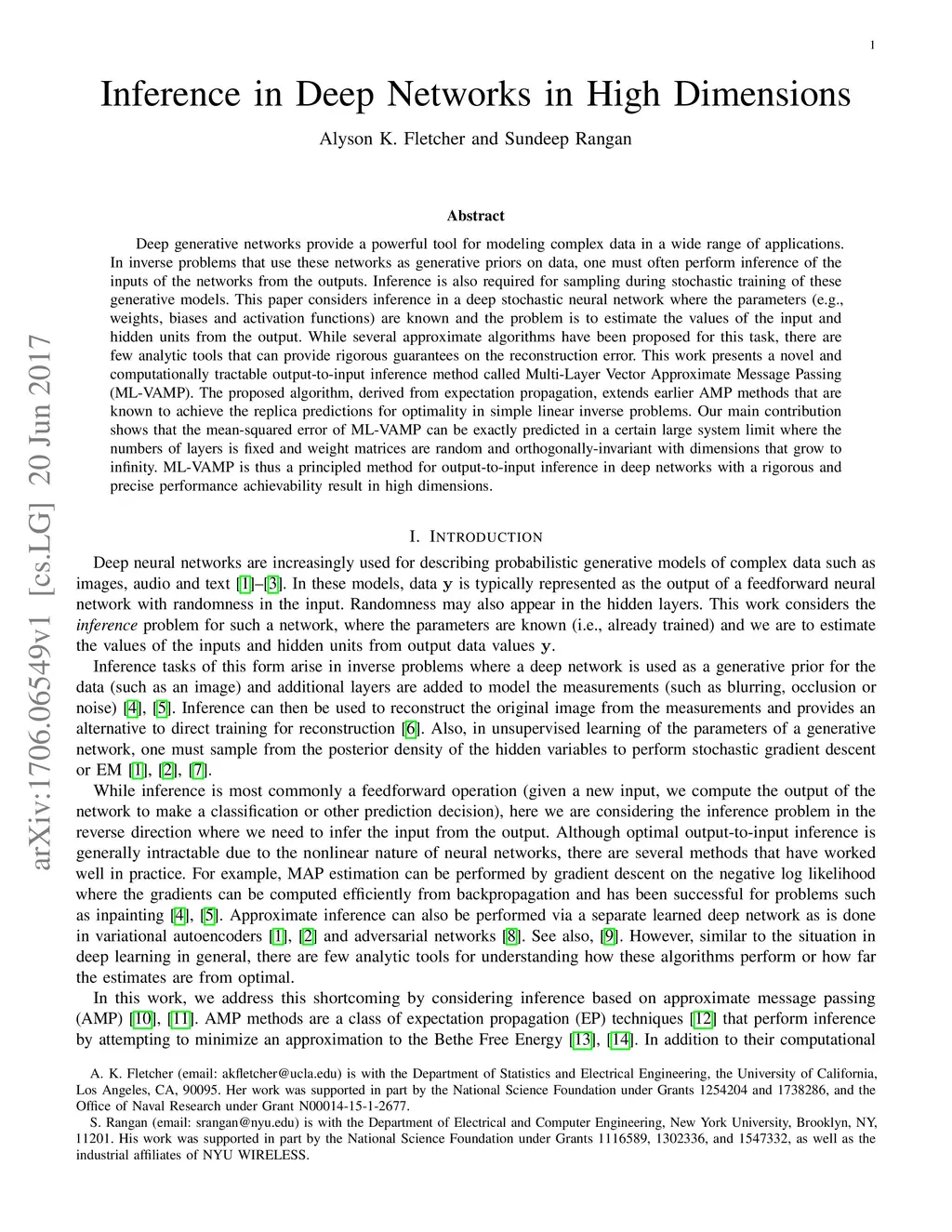 Inference in Deep Networks in High Dimensions