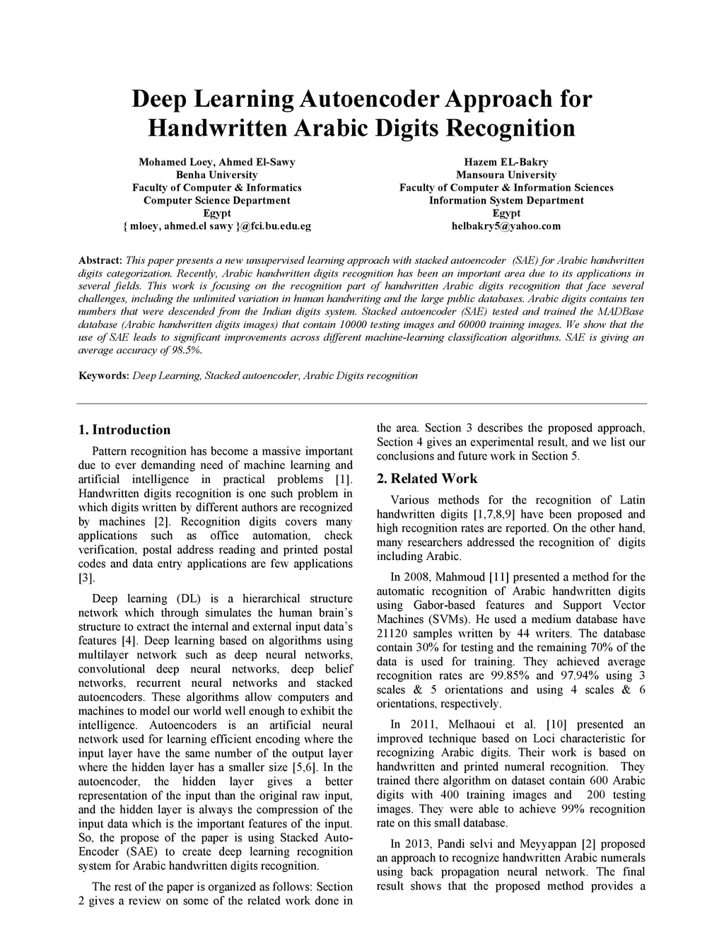 Deep Learning Autoencoder Approach for Handwritten Arabic Digits