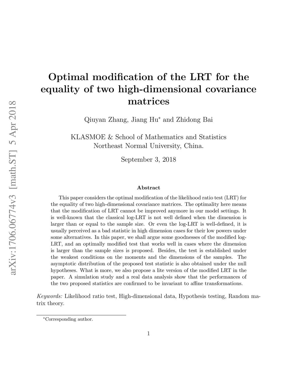 This paper considers the optimal modification of the likelihood ratio test (LRT) for the equality of two high-dimensional covariance matrices. The classical LRT is not well defined when the dimensions are larger than or equal to one of the sample sizes. In this paper, an optimally modified test that works well in cases where the dimensions may be larger than the sample sizes is proposed. In addition, the test is established under the weakest conditions on the moments and the dimensions of the samples. We also present weakly consistent estimators of the fourth moments, which are necessary for the proposed test, when they are not equal to 3. From the simulation results and real data analysis, we find that the performances of the proposed statistics are robust against affine transformations.