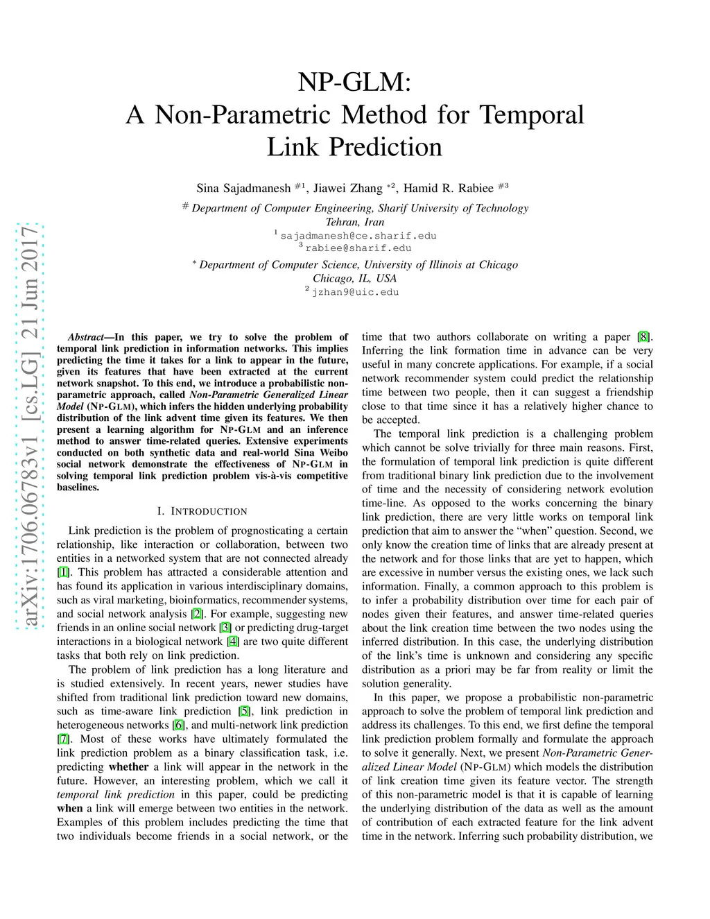 NPGLM: A Non-Parametric Method for Temporal Link Prediction