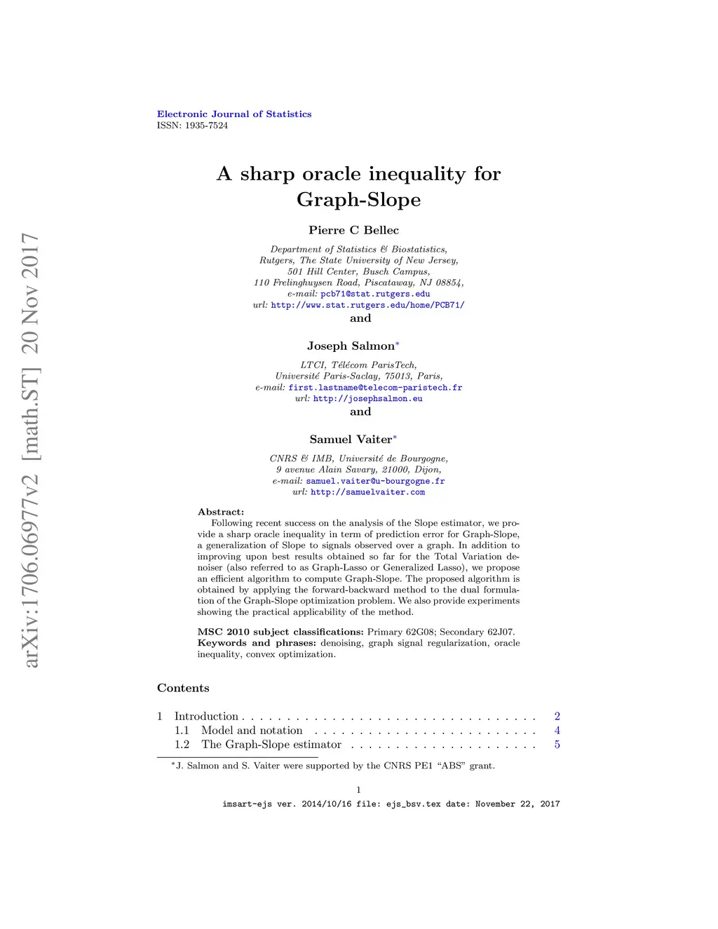 Following recent success on the analysis of the Slope estimator, we provide a sharp oracle inequality in term of prediction error for Graph-Slope, a generalization of Slope to signals observed over a graph. In addition to improving upon best results obtained so far for the Total Variation denoiser (also referred to as Graph-Lasso or Generalized Lasso), we propose an efficient algorithm to compute Graph-Slope. The proposed algorithm is obtained by applying the forward-backward method to the dual formulation of the Graph-Slope optimization problem. We also provide experiments showing the interest of the method.