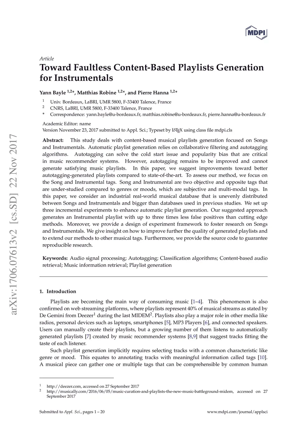 Toward Faultless Content-Based Playlists Generation for Instrumentals