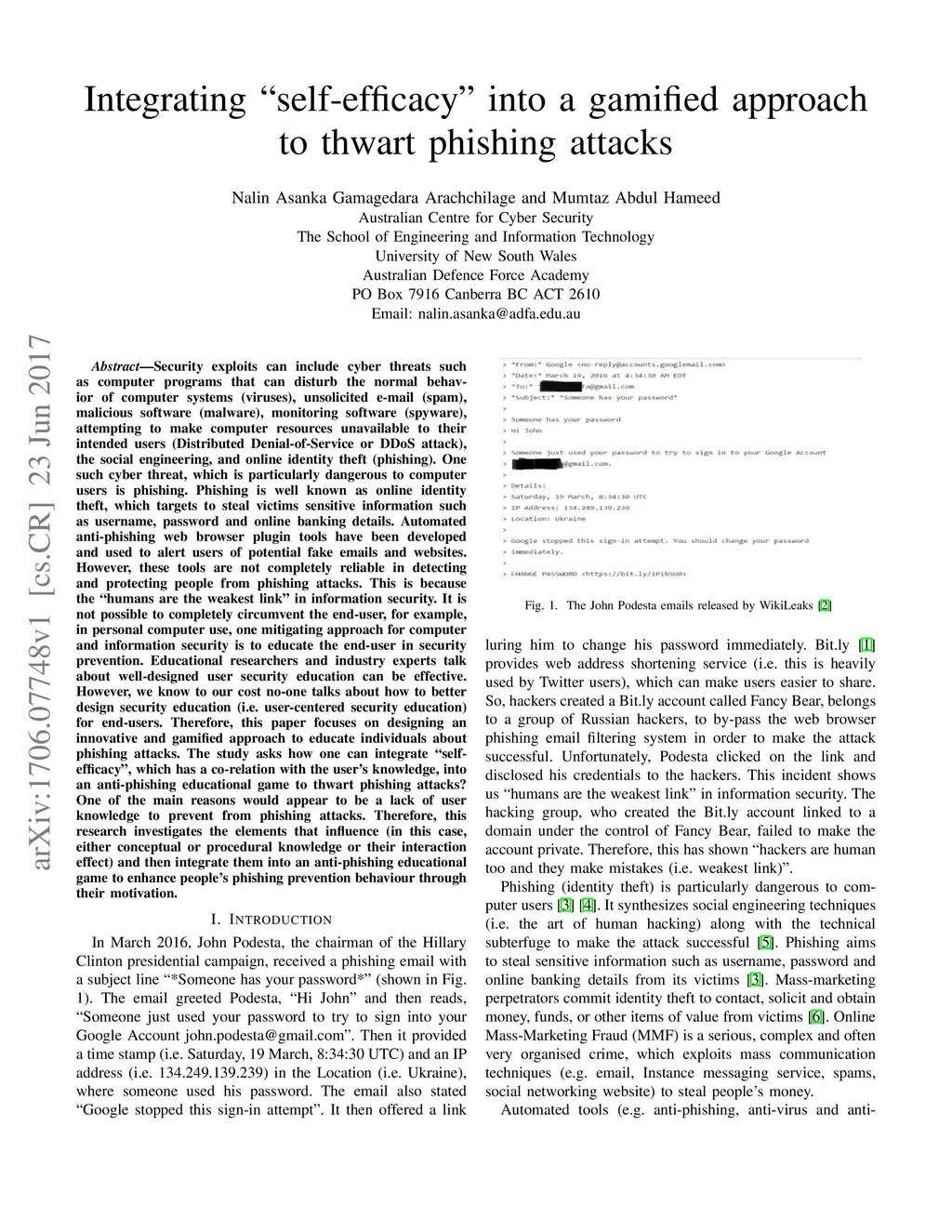 Integrating self-efficacy into a gamified approach to thwart phishing