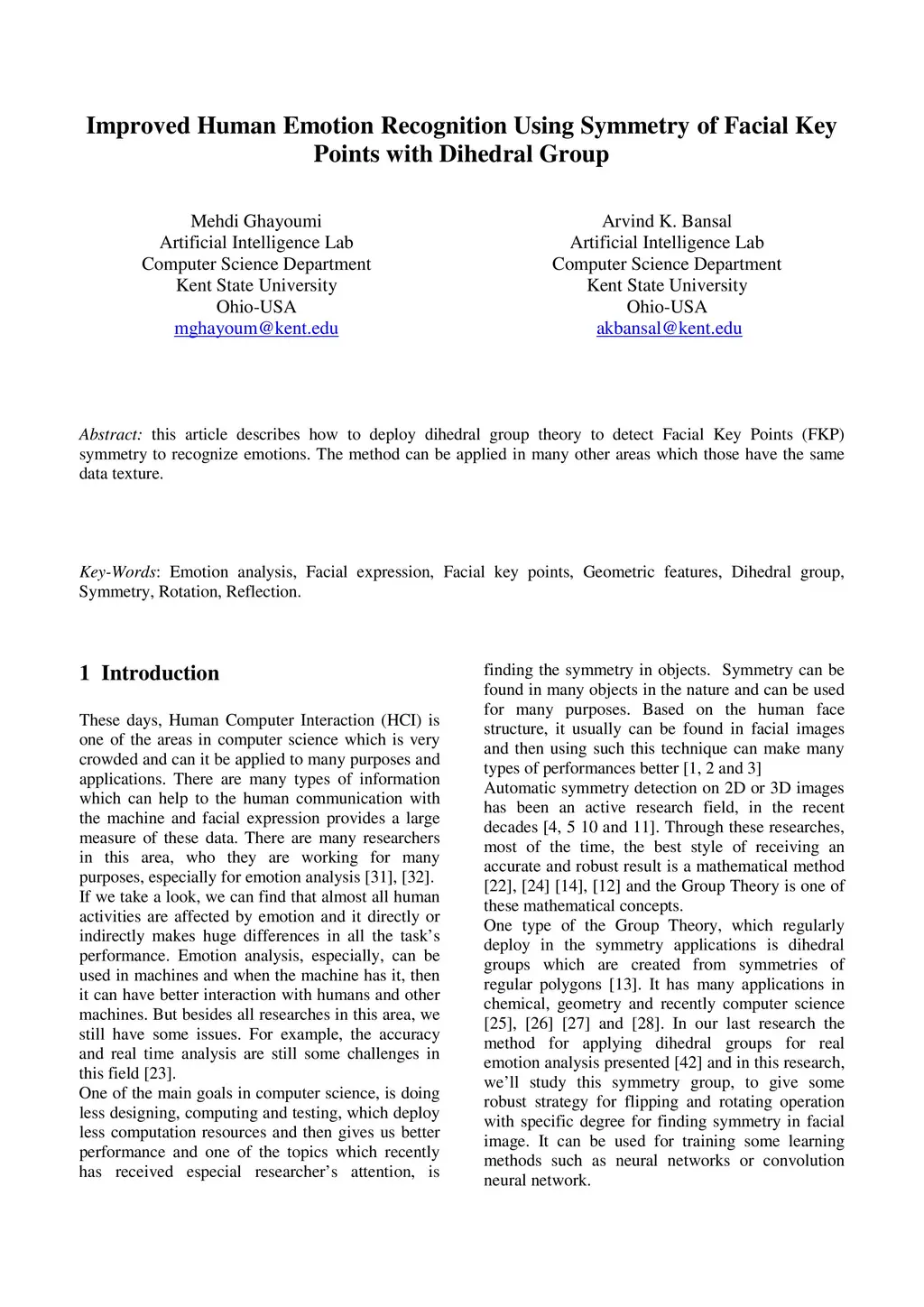 This article describes how to deploy dihedral group theory to detect Facial Key Points (FKP) symmetry to recognize emotions. The method can be applied in many other areas which those have the same data texture.