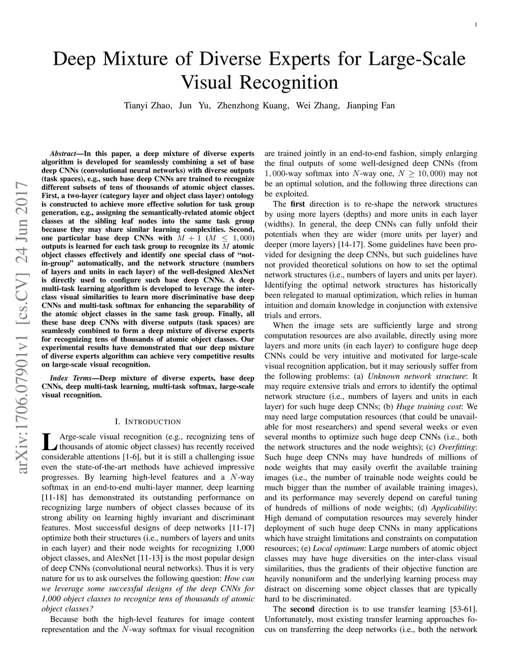 Deep Mixture of Diverse Experts for Large-Scale Visual Recognition