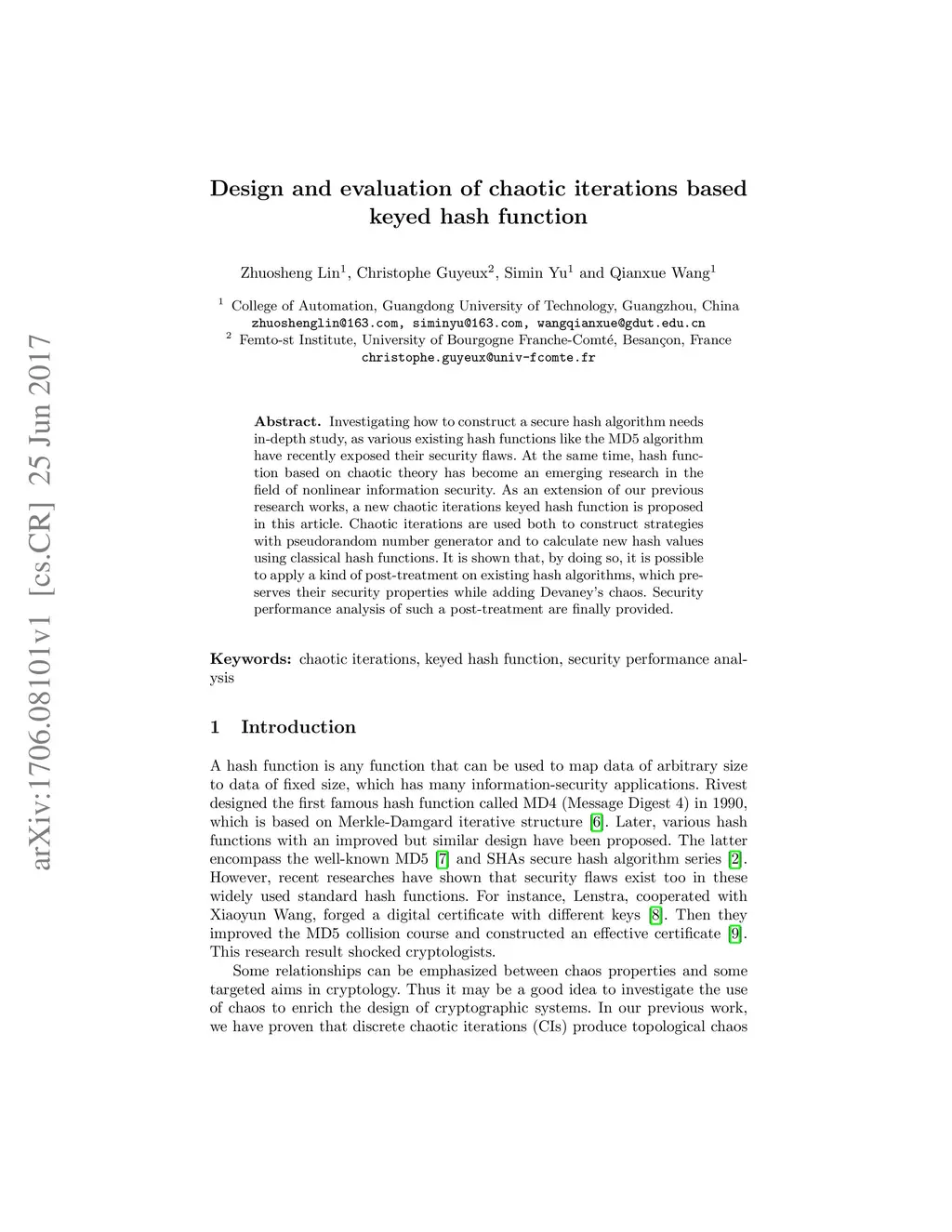 Design and evaluation of chaotic iterations based keyed hash function
