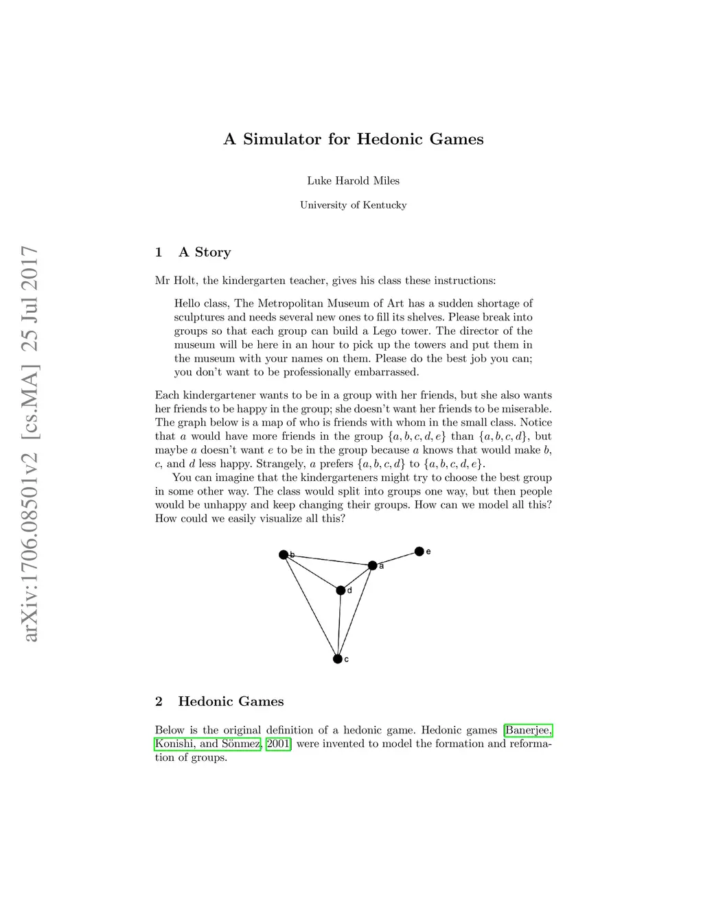 Hedonic games are meant to model how coalitions of people form and break apart in the real world. However, it is difficult to run simulations when everything must be done by hand on paper. We present an online software that allows fast and visual simulation of several types of hedonic games. http://lukemiles.org/hedonic-games/