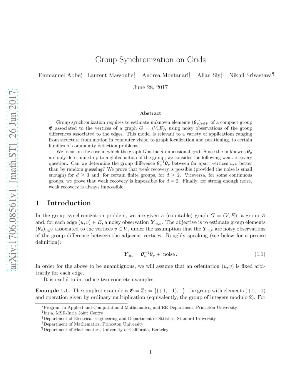 Group synchronization requires to estimate unknown elements of a compact group associated to the vertices of a graph , using noisy observations of the group differences associated to the edges. This model is relevant to a variety of applications ranging from structure from motion in computer vision to graph localization and positioning, to certain families of community detection problems. We focus on the case in which the graph is the -dimensional grid. Since the unknowns are only determined up to a global action of the group, we consider the following weak recovery question. Can we determine the group difference between far apart vertices better than by random guessing? We prove that weak recovery is possible (provided the noise is small enough) for and, for certain finite groups, for . Viceversa, for some continuous groups, we prove that weak recovery is impossible for . Finally, for strong enough noise, weak recovery is always impossible.