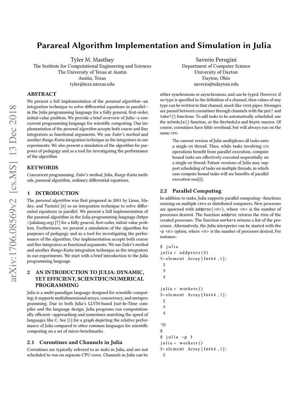 Parareal Algorithm Implementation and Simulation in Julia