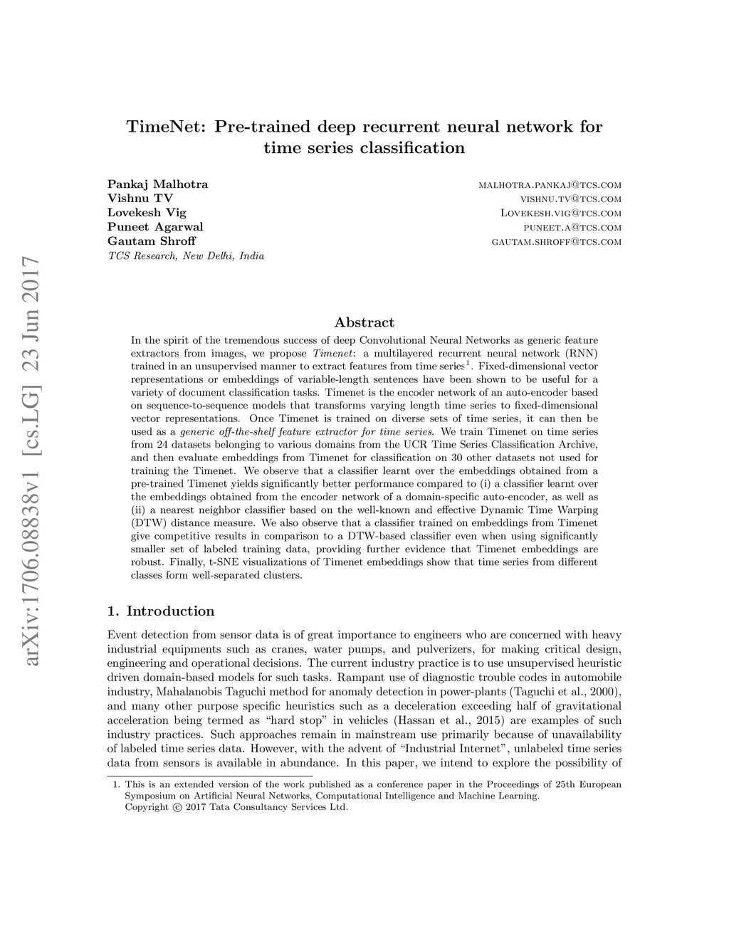 TimeNet: Pre-trained deep recurrent neural network for time series