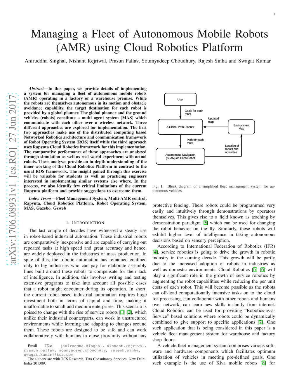 Managing a Fleet of Autonomous Mobile Robots (AMR) using Cloud Robotics
