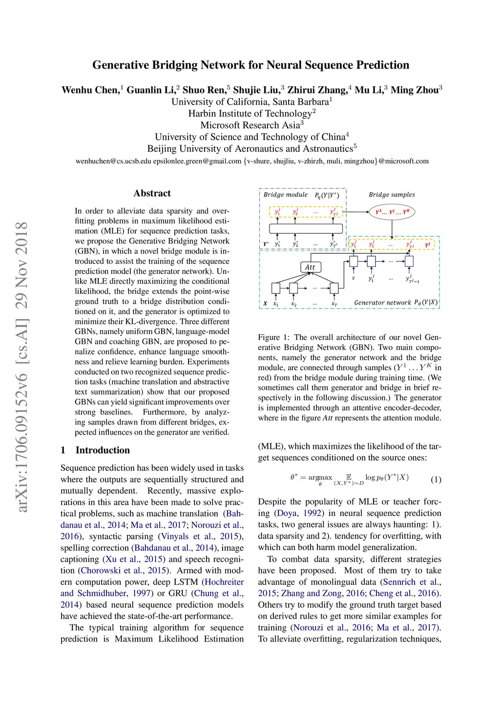 Generative Bridging Network in Neural Sequence Prediction