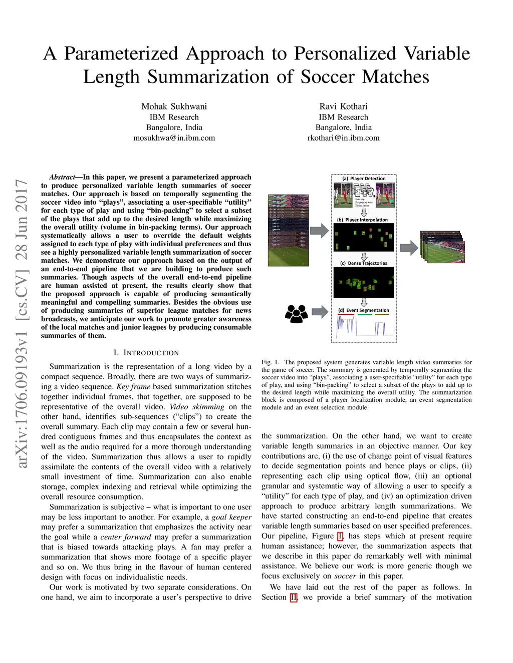 We present a parameterized approach to produce personalized variable length summaries of soccer matches. Our approach is based on temporally segmenting the soccer video into 'plays', associating a user-specifiable útility' for each type of play and using 'bin-packing' to select a subset of the plays that add up to the desired length while maximizing the overall utility (volume in bin-packing terms). Our approach systematically allows a user to override the default weights assigned to each type of play with individual preferences and thus see a highly personalized variable length summarization of soccer matches. We demonstrate our approach based on the output of an end-to-end pipeline that we are building to produce such summaries. Though aspects of the overall end-to-end pipeline are human assisted at present, the results clearly show that the proposed approach is capable of producing semantically meaningful and compelling summaries. Besides the obvious use of producing summaries of superior league matches for news broadcasts, we anticipate our work to promote greater awareness of the local matches and junior leagues by producing consumable summaries of them.