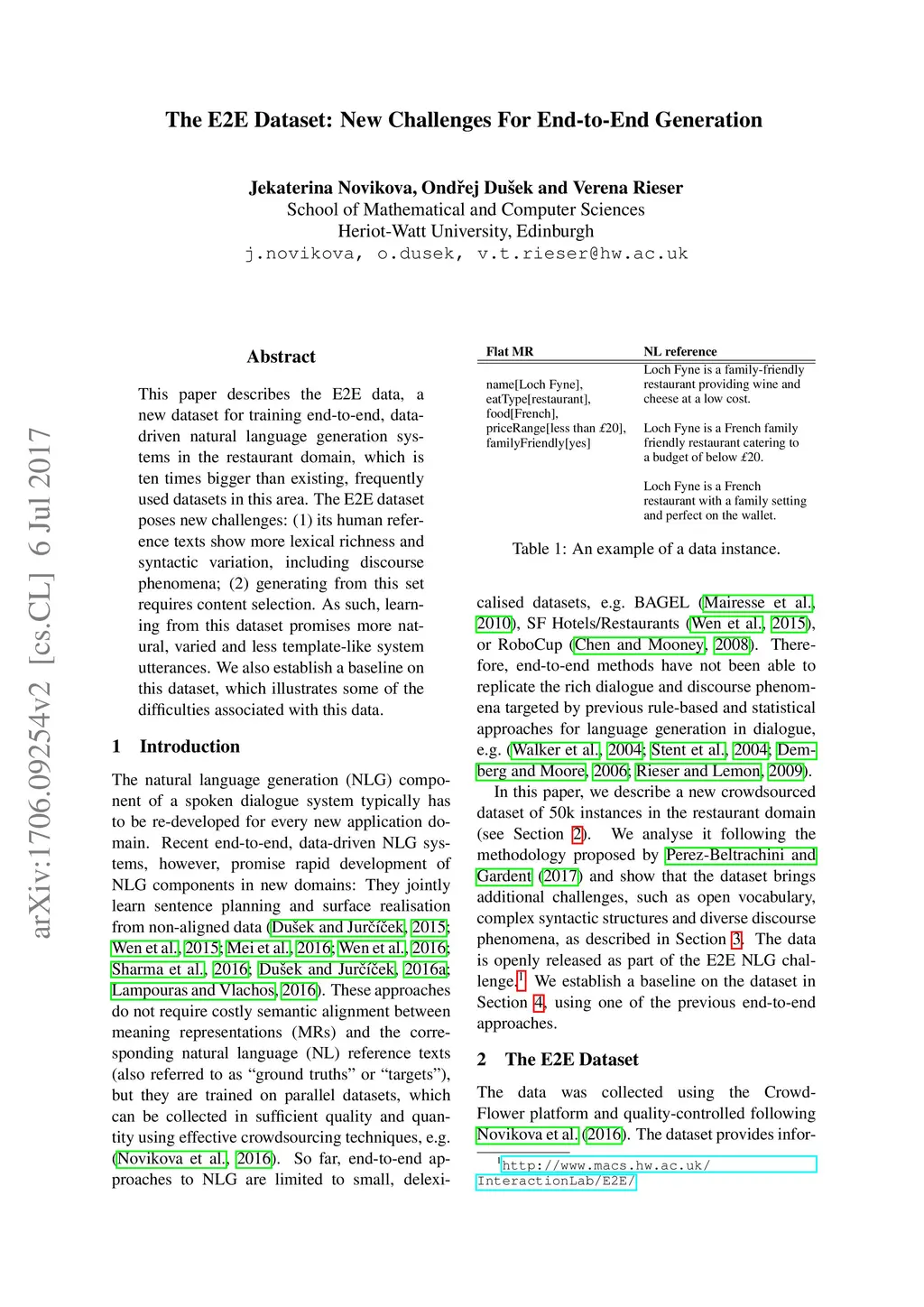 The E2E Dataset: New Challenges For End-to-End Generation