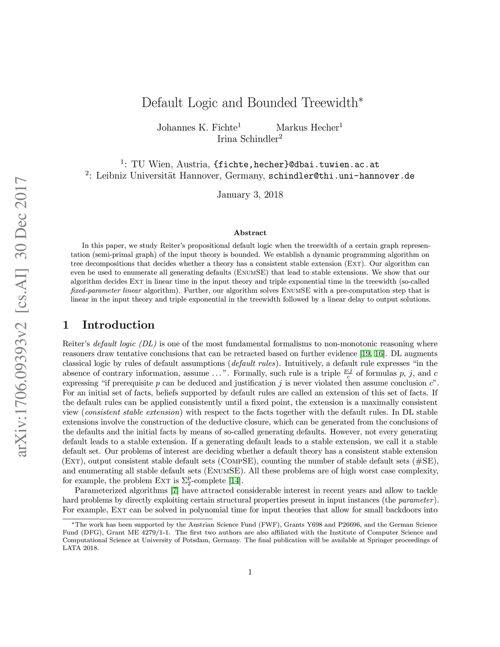 In this paper, we study Reiter's propositional default logic when the treewidth of a certain graph representation (semi-incidence graph) of the input theory is bounded. We establish a dynamic programming algorithm on tree decompositions that decides whether a theory has a consistent stable extension or can even be used to enumerate all generating defaults that lead to stable extensions. We show that, for input theories whose semi-incidence graph has bounded treewidth, our algorithm decides whether a theory has a stable extension in linear time and enumerates all characteristic generating defaults with linear delay.