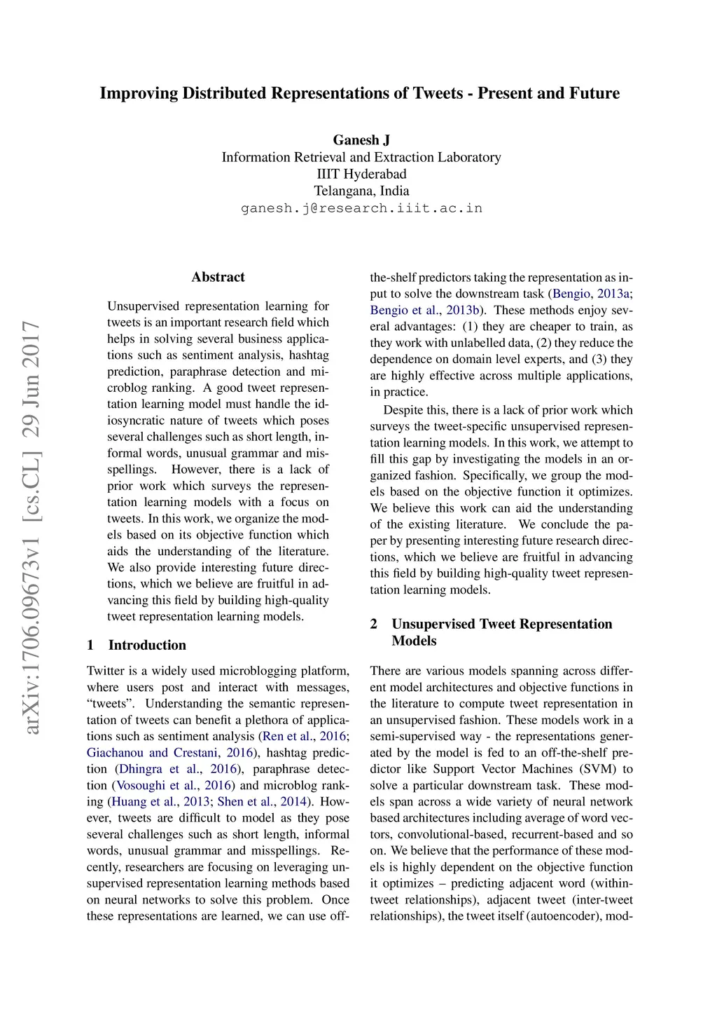 Improving Distributed Representations of Tweets - Present and Future