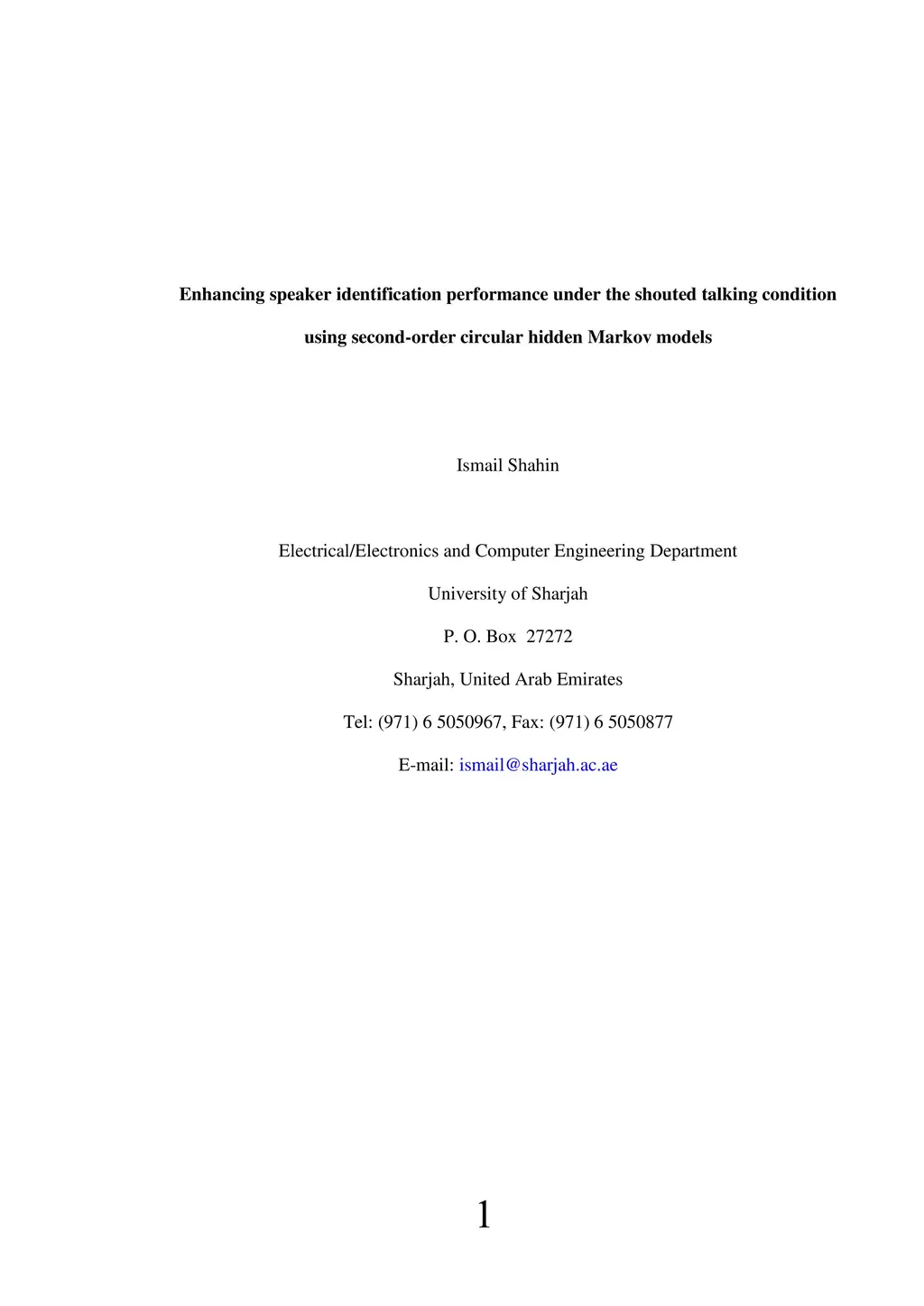 It is known that the performance of speaker identification systems is high under the neutral talking condition; however, the performance deteriorates under the shouted talking condition. In this paper, second-order circular hidden Markov models (CHMM2s) have been proposed and implemented to enhance the performance of isolated-word text-dependent speaker identification systems under the shouted talking condition. Our results show that CHMM2s significantly improve speaker identification performance under such a condition compared to the first-order left-to-right hidden Markov models (LTRHMM1s), second-order left-to-right hidden Markov models (LTRHMM2s), and the first-order circular hidden Markov models (CHMM1s). Under the shouted talking condition, our results show that the average speaker identification performance is 23% based on LTRHMM1s, 59% based on LTRHMM2s, and 60% based on CHMM1s. On the other hand, the average speaker identification performance under the same talking condition based on CHMM2s is 72%.