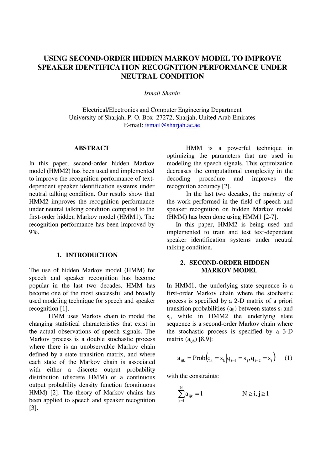 Using Second-Order Hidden Markov Model to Improve Speaker Identification