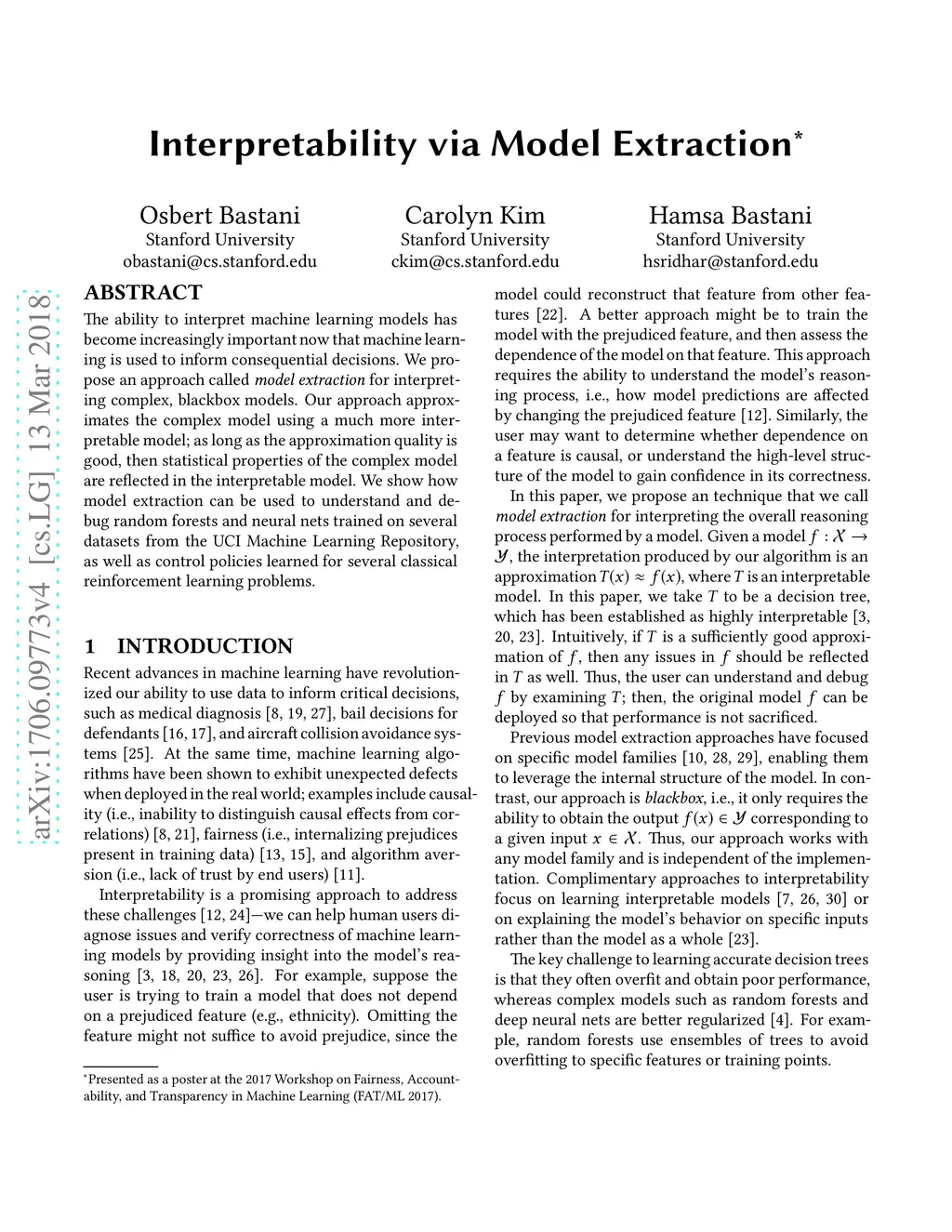 Interpretability via Model Extraction
