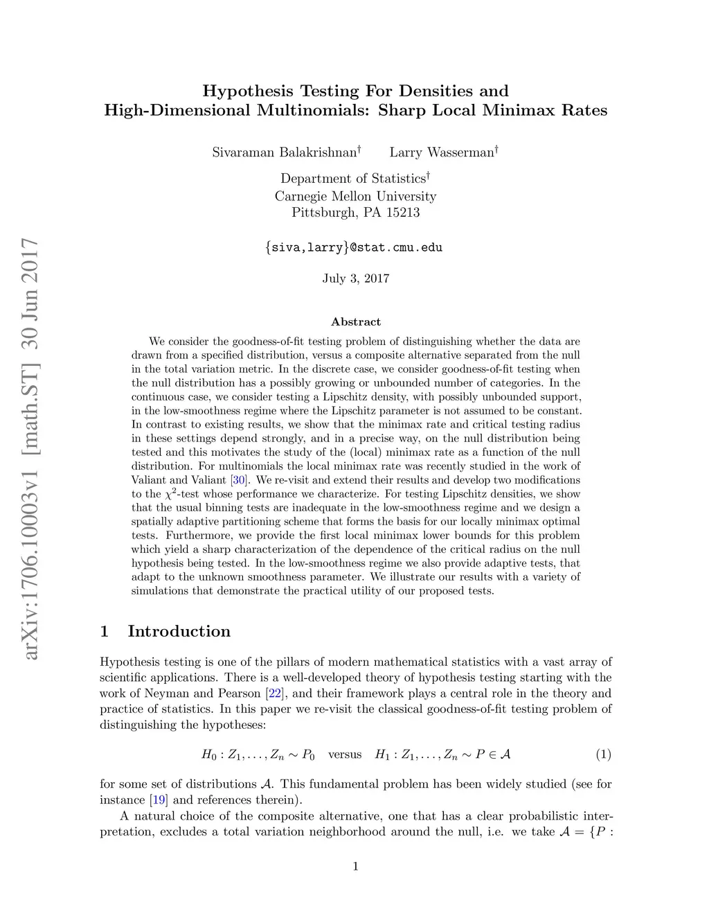 Hypothesis Testing For Densities and High-Dimensional Multinomials: