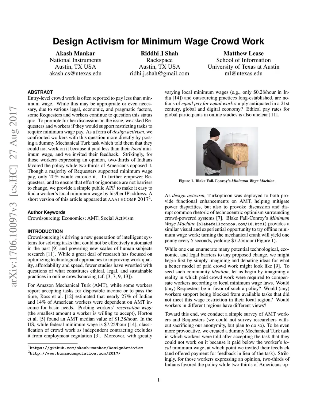 Design Activism for Minimum Wage Crowd Work