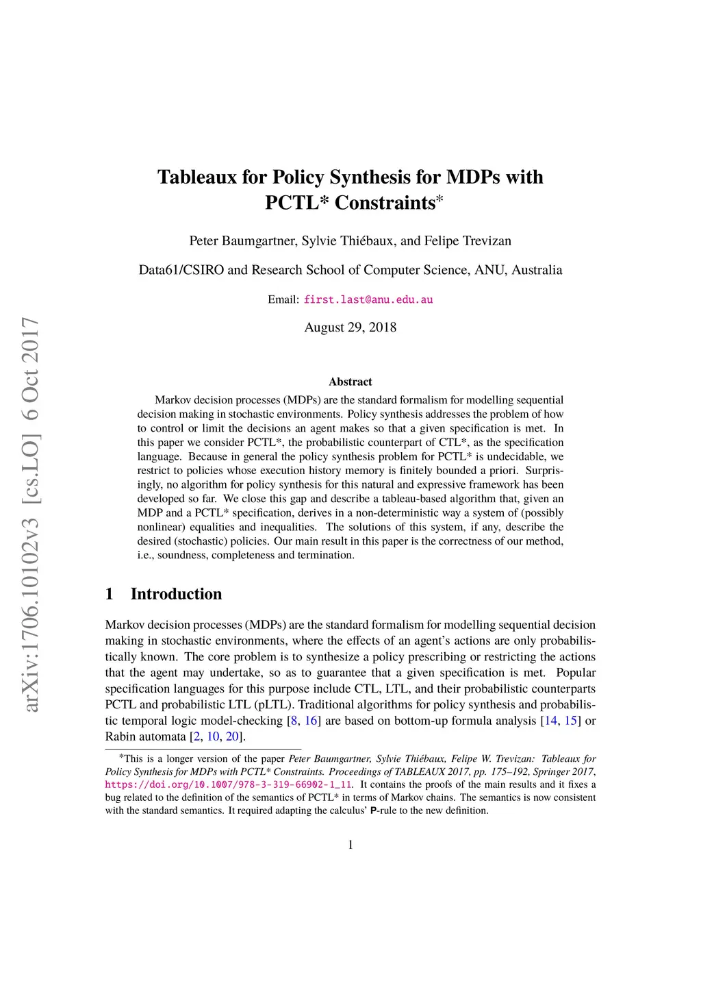 Tableaux for Policy Synthesis for MDPs with PCTL* Constraints