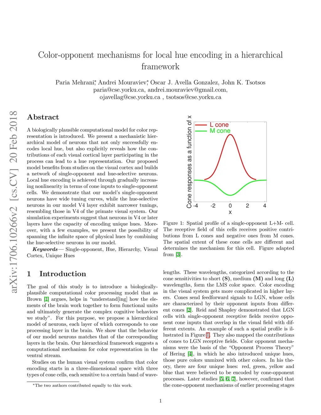 Color-opponent mechanisms for local hue encoding in a hierarchical