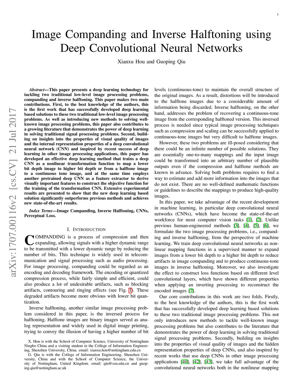 Image Companding and Inverse Halftoning using Deep Convolutional Neural