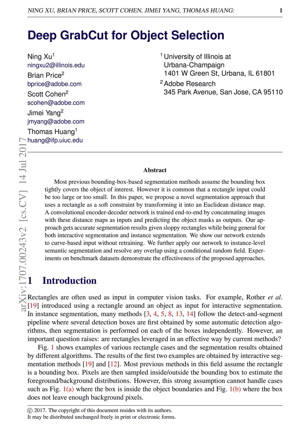 Most previous bounding-box-based segmentation methods assume the bounding box tightly covers the object of interest. However it is common that a rectangle input could be too large or too small. In this paper, we propose a novel segmentation approach that uses a rectangle as a soft constraint by transforming it into an Euclidean distance map. A convolutional encoder-decoder network is trained end-to-end by concatenating images with these distance maps as inputs and predicting the object masks as outputs. Our approach gets accurate segmentation results given sloppy rectangles while being general for both interactive segmentation and instance segmentation. We show our network extends to curve-based input without retraining. We further apply our network to instance-level semantic segmentation and resolve any overlap using a conditional random field. Experiments on benchmark datasets demonstrate the effectiveness of the proposed approaches.