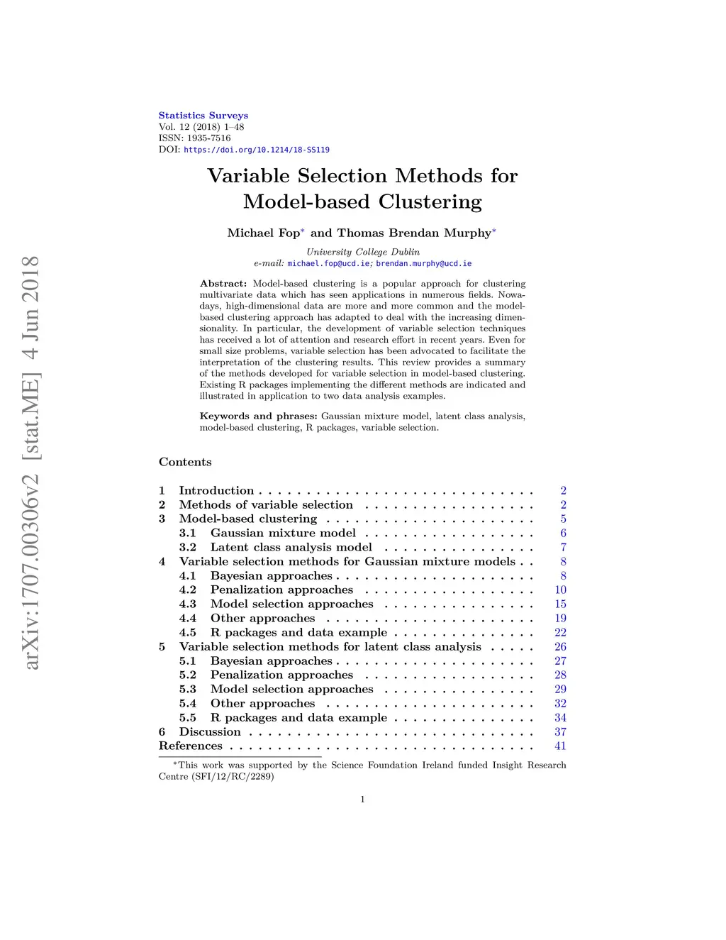 Variable Selection Methods for Model-based Clustering