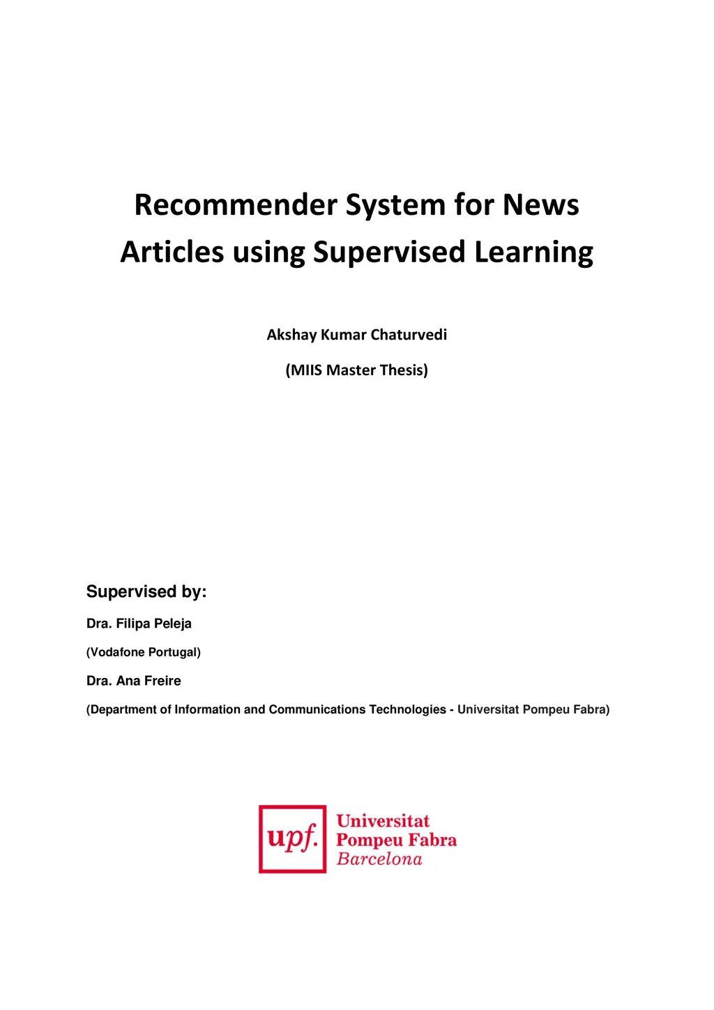 In the last decade we have observed a mass increase of information, in particular information that is shared through smartphones. Consequently, the amount of information that is available does not allow the average user to be aware of all his options. In this context, recommender systems use a number of techniques to help a user find the desired product. Hence, nowadays recommender systems play an important role. Recommender Systems' aim to identify products that best fits user preferences. These techniques are advantageous to both users and vendors, as it enables the user to rapidly find what he needs and the vendors to promote their products and sales. As the industry became aware of the gains that could be accomplished by using these algorithms, also a very interesting problem for many researchers, recommender systems became a very active area since the mid 90's. Having in mind that this is an ongoing problem the present thesis intends to observe the value of using a recommender algorithm to find users likes by observing her domain preferences. In a balanced probabilistic method, this thesis will show how news topics can be used to recommend news articles. In this thesis, we used different machine learning methods to determine the user ratings for an article. To tackle this problem, supervised learning methods such as linear regression, Naive Bayes and logistic regression are used. All the aforementioned models have a different nature which has an impact on the solution of the given problem. Furthermore, number of experiments are presented and discussed to identify the feature set that fits best to the problem.