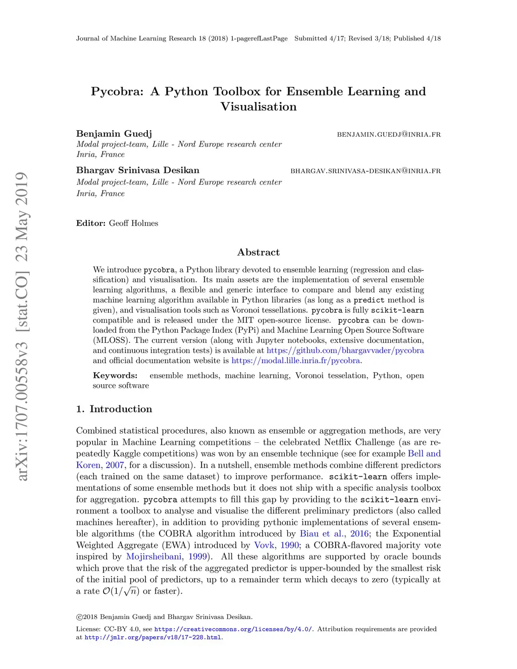 Pycobra: A Python Toolbox for Ensemble Learning and Visualisation