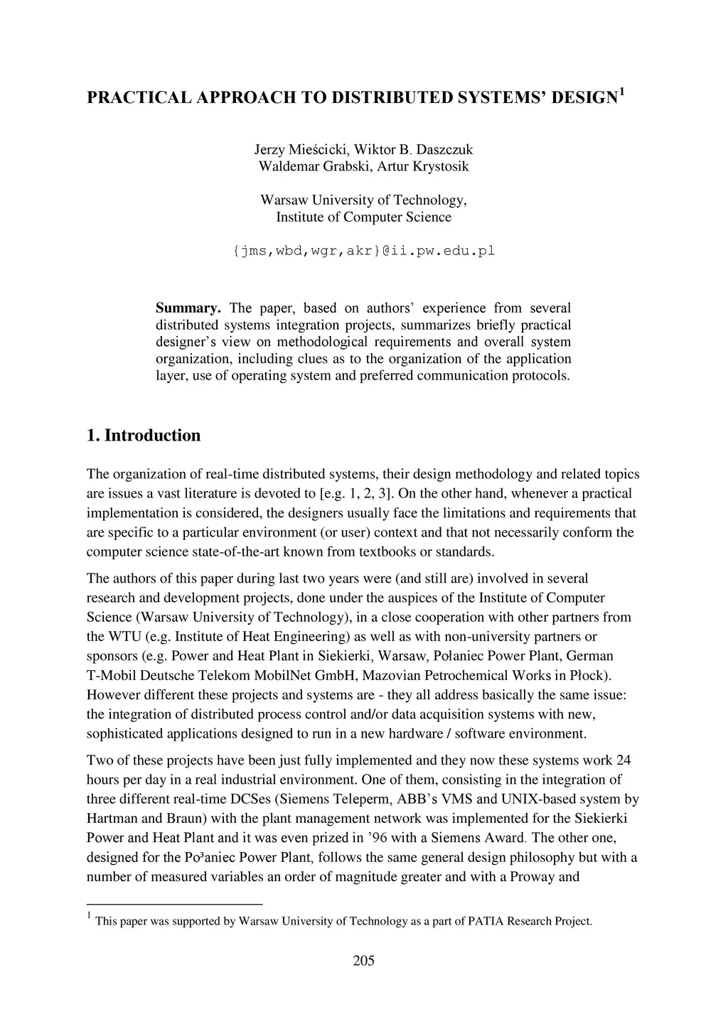 The paper, based on authors' experience from several distributed systems integration projects, summarizes briefly practical designer's view on methodological requirements and overall system organization, including clues as to the organization of the application layer, use of operating system and preferred communication protocols.
