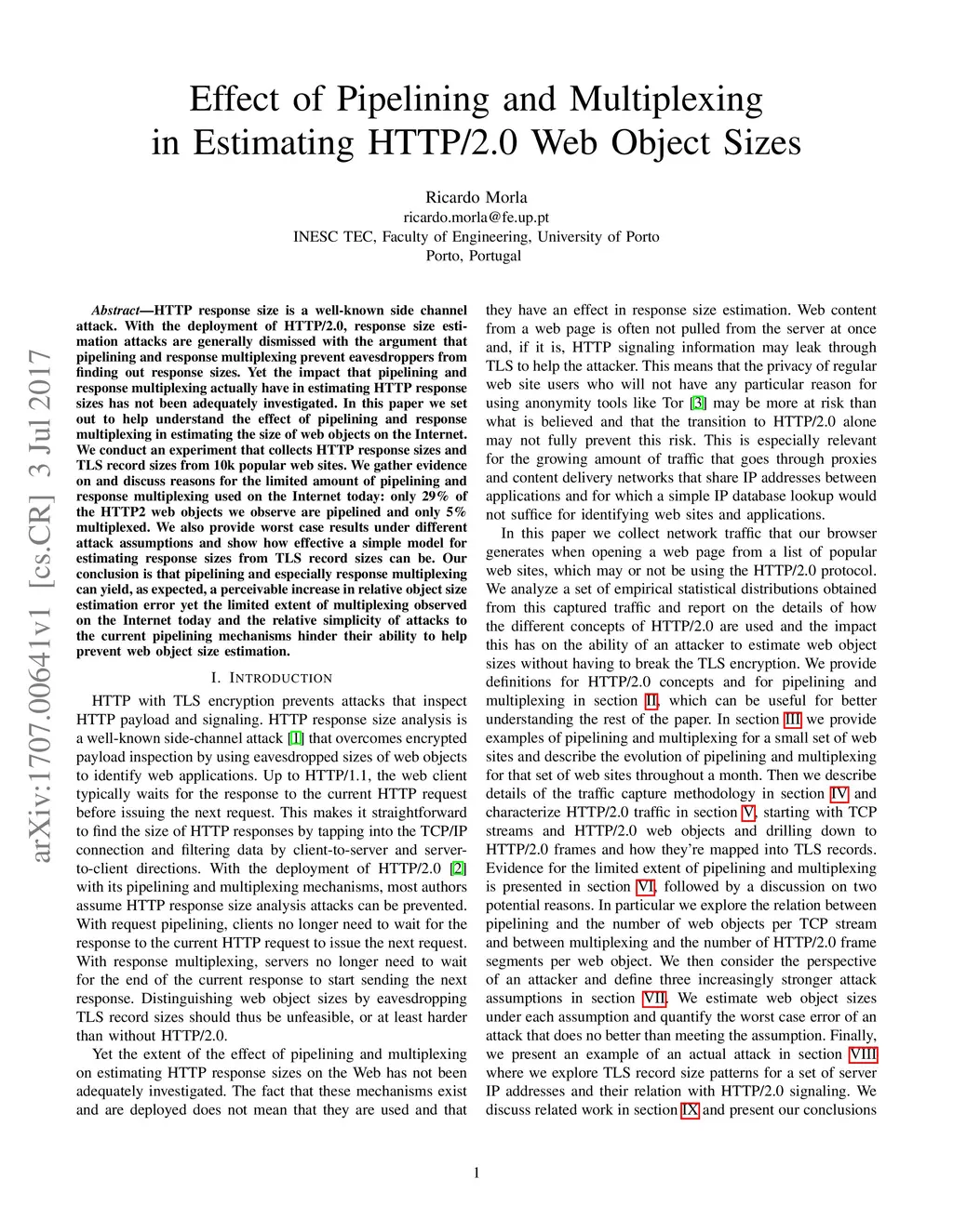 HTTP response size is a well-known side channel attack. With the deployment of HTTP/2.0, response size estimation attacks are generally dismissed with the argument that pipelining and response multiplexing prevent eavesdroppers from finding out response sizes. Yet the impact that pipelining and response multiplexing actually have in estimating HTTP response sizes has not been adequately investigated. In this paper we set out to help understand the effect of pipelining and response multiplexing in estimating the size of web objects on the Internet. We conduct an experiment that collects HTTP response sizes and TLS record sizes from 10k popular web sites. We gather evidence on and discuss reasons for the limited amount of pipelining and response multiplexing used on the Internet today: only 29% of the HTTP2 web objects we observe are pipelined and only 5% multiplexed. We also provide worst case results under different attack assumptions and show how effective a simple model for estimating response sizes from TLS record sizes can be. Our conclusion is that pipelining and especially response multiplexing can yield, as expected, a perceivable increase in relative object size estimation error yet the limited extent of multiplexing observed on the Internet today and the relative simplicity of attacks to the current pipelining mechanisms hinder their ability to help prevent web object size estimation.