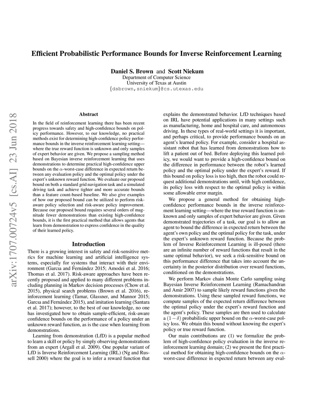 Efficient Probabilistic Performance Bounds for Inverse Reinforcement