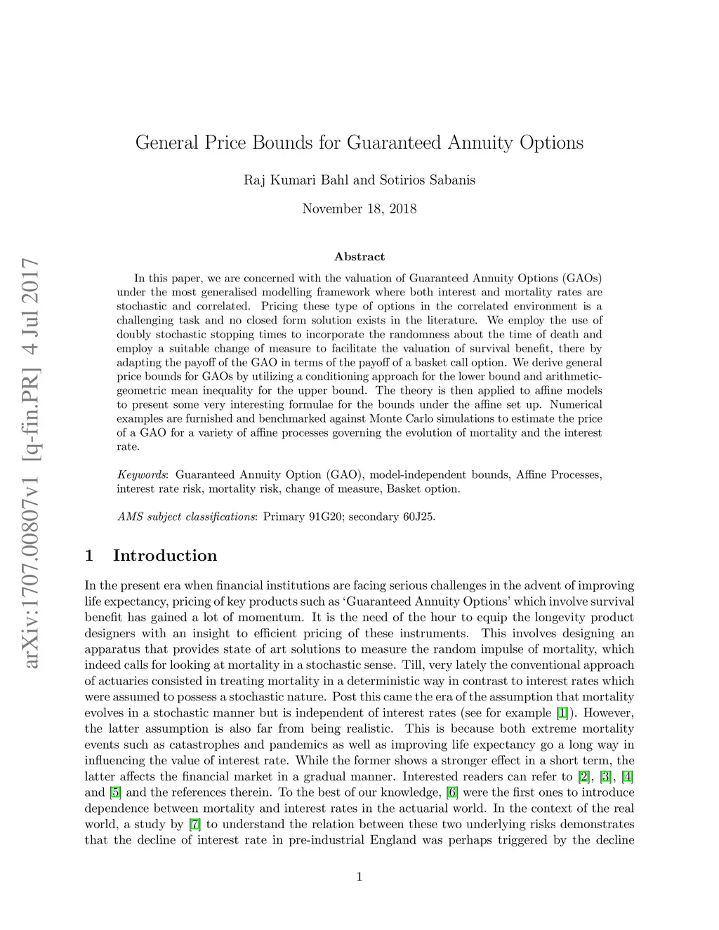 In this paper, we are concerned with the valuation of Guaranteed Annuity Options (GAOs) under the most generalised modelling framework where both interest and mortality rates are stochastic and correlated. Pricing these type of options in the correlated environment is a challenging task and no closed form solution exists in the literature. We employ the use of doubly stochastic stopping times to incorporate the randomness about the time of death and employ a suitable change of measure to facilitate the valuation of survival benefit, there by adapting the payoff of the GAO in terms of the payoff of a basket call option. We derive general price bounds for GAOs by utilizing a conditioning approach for the lower bound and arithmetic-geometric mean inequality for the upper bound. The theory is then applied to affine models to present some very interesting formulae for the bounds under the affine set up. Numerical examples are furnished and benchmarked against Monte Carlo simulations to estimate the price of a GAO for a variety of affine processes governing the evolution of mortality and the interest rate.