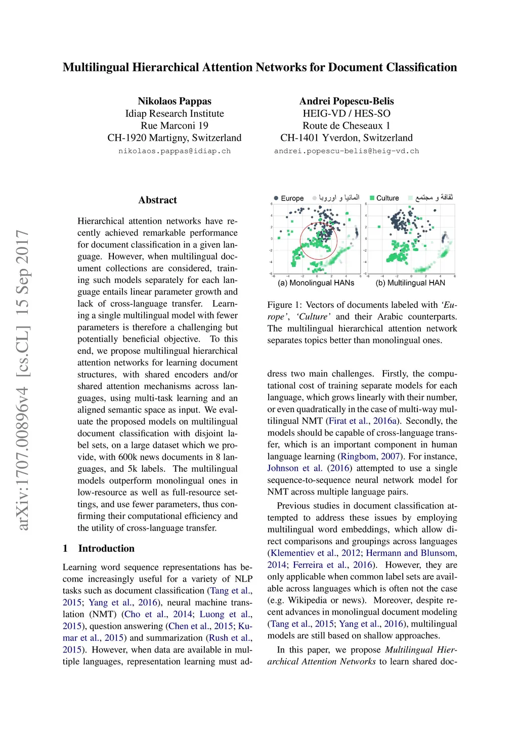 Multilingual Hierarchical Attention Networks for Document Classification