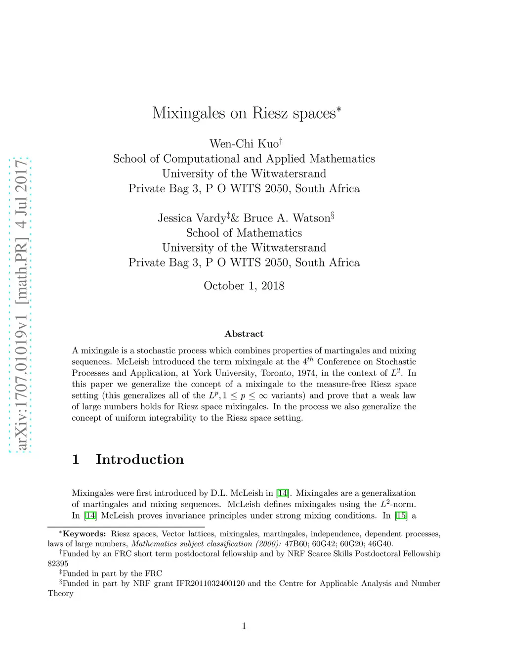 A mixingale is a stochastic process which combines properties of martingales and mixing sequences. McLeish introduced the term mixingale at the Conference on Stochastic Processes and Application, at York University, Toronto, 1974, in the context of . In this paper we generalize the concept of a mixingale to the measure-free Riesz space setting (this generalizes all of the variants) and prove that a weak law of large numbers holds for Riesz space mixingales. In the process we also generalize the concept of uniform integrability to the Riesz space setting.