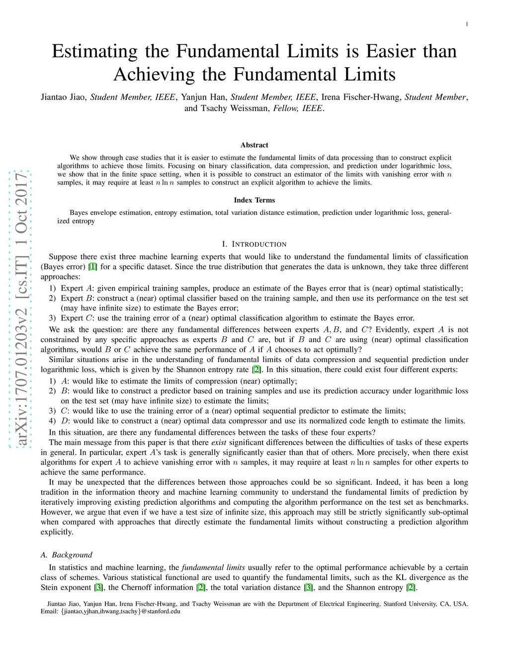 We show through case studies that it is easier to estimate the fundamental limits of data processing than to construct explicit algorithms to achieve those limits. Focusing on binary classification, data compression, and prediction under logarithmic loss, we show that in the finite space setting, when it is possible to construct an estimator of the limits with vanishing error with samples, it may require at least samples to construct an explicit algorithm to achieve the limits.