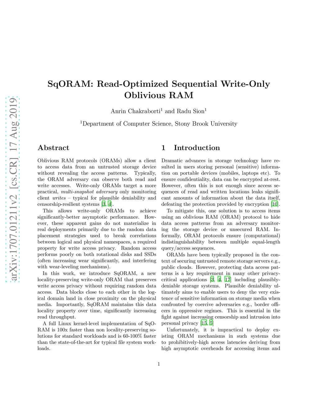 Oblivious RAM protocols (ORAMs) allow a client to access data from an untrusted storage device without revealing the access patterns. Typically, the ORAM adversary can observe both read and write accesses. Write-only ORAMs target a more practical, {\em multi-snapshot adversary} only monitoring client writes -- typical for plausible deniability and censorship-resilient systems. This allows write-only ORAMs to achieve significantly-better asymptotic performance. However, these apparent gains do not materialize in real deployments primarily due to the random data placement strategies used to break correlations between logical and physical namespaces, a required property for write access privacy. Random access performs poorly on both rotational disks and SSDs (often increasing wear significantly, and interfering with wear-leveling mechanisms). In this work, we introduce SqORAM, a new locality-preserving write-only ORAM that preserves write access privacy without requiring random data access. Data blocks close to each other in the logical domain land in close proximity on the physical media. Importantly, SqORAM maintains this data locality property over time, significantly increasing read throughput. A full Linux kernel-level implementation of SqORAM is 100x faster than non locality-preserving solutions for standard workloads and is 60-100% faster than the state-of-the-art for typical file system workloads.