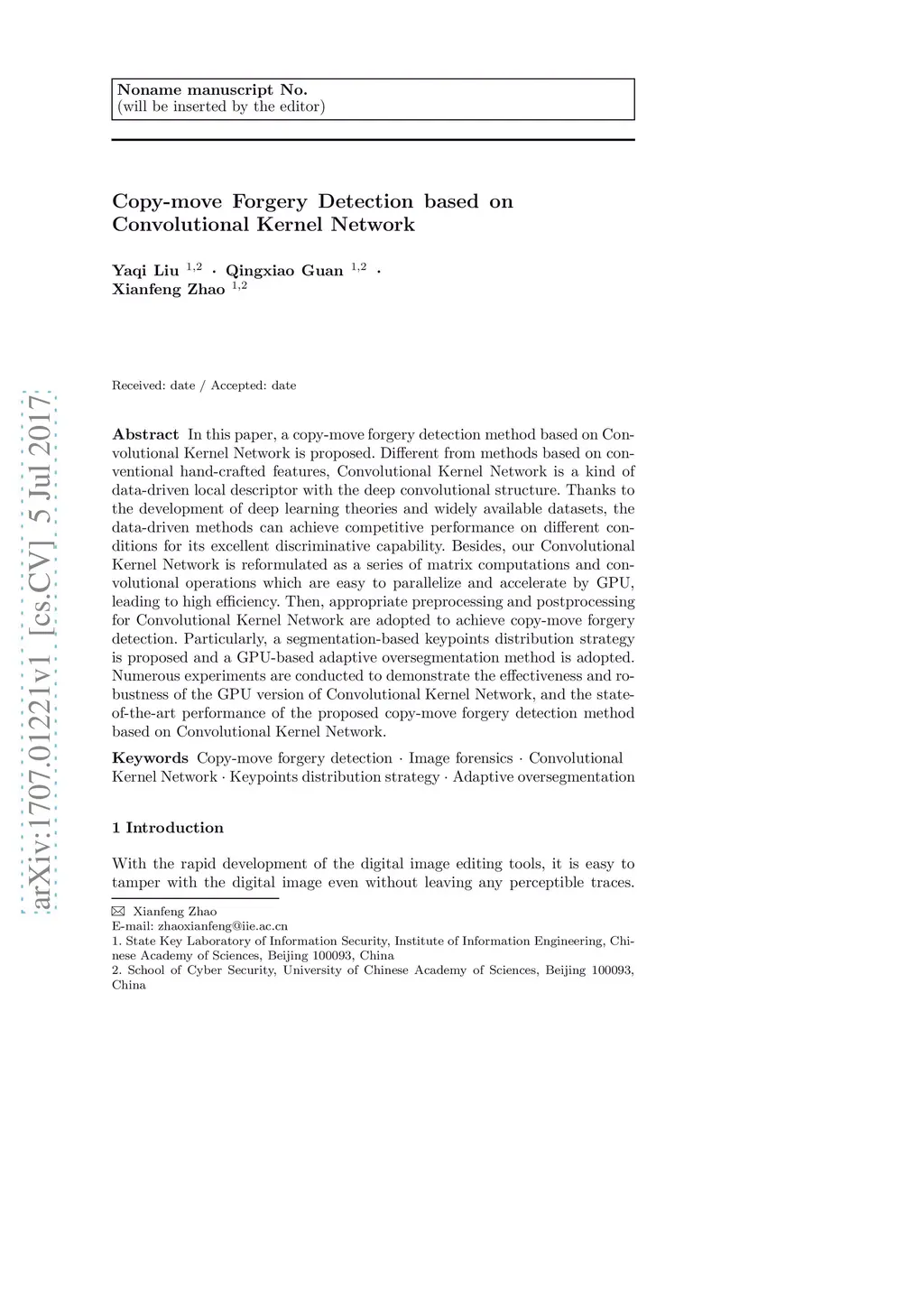 Copy-move Forgery Detection based on Convolutional Kernel Network