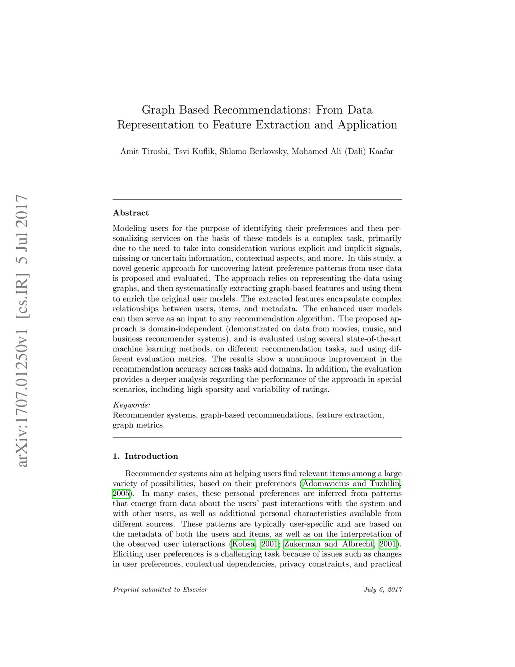 Modeling users for the purpose of identifying their preferences and then personalizing services on the basis of these models is a complex task, primarily due to the need to take into consideration various explicit and implicit signals, missing or uncertain information, contextual aspects, and more. In this study, a novel generic approach for uncovering latent preference patterns from user data is proposed and evaluated. The approach relies on representing the data using graphs, and then systematically extracting graph-based features and using them to enrich the original user models. The extracted features encapsulate complex relationships between users, items, and metadata. The enhanced user models can then serve as an input to any recommendation algorithm. The proposed approach is domain-independent (demonstrated on data from movies, music, and business recommender systems), and is evaluated using several state-of-the-art machine learning methods, on different recommendation tasks, and using different evaluation metrics. The results show a unanimous improvement in the recommendation accuracy across tasks and domains. In addition, the evaluation provides a deeper analysis regarding the performance of the approach in special scenarios, including high sparsity and variability of ratings.