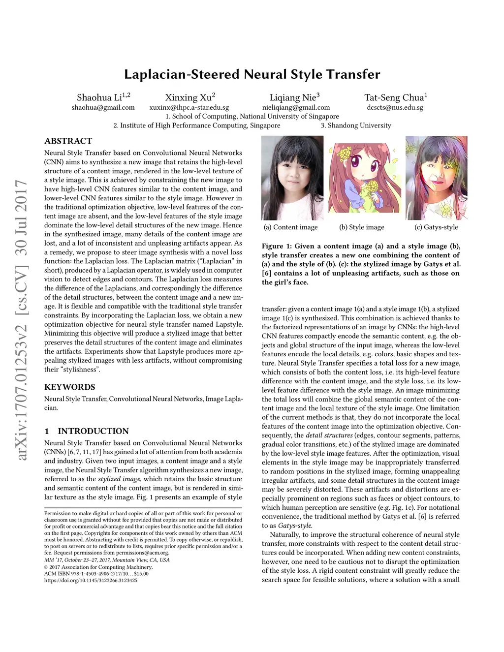Laplacian-Steered Neural Style Transfer