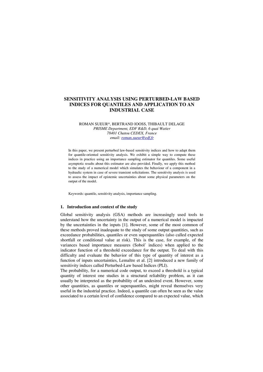 In this paper, we present perturbed law-based sensitivity indices and how to adapt them for quantile-oriented sensitivity analysis. We exhibit a simple way to compute these indices in practice using an importance sampling estimator for quantiles. Some useful asymptotic results about this estimator are also provided. Finally, we apply this method to the study of a numerical model which simulates the behaviour of a component in a hydraulic system in case of severe transient solicitations. The sensitivity analysis is used to assess the impact of epistemic uncertainties about some physical parameters on the output of the model.