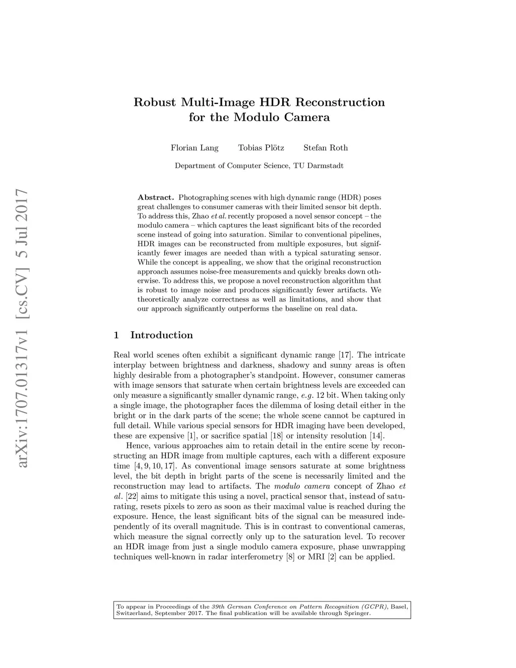 Robust Multi-Image HDR Reconstruction for the Modulo Camera